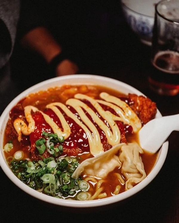panko breaded chicken breast, bone broth, kimchi, katsu sauce, spicy mayo, corn, tofu, egg ramen noodle